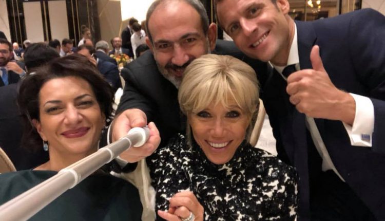 Մակրոնի եւ նրա կնոջ Բրիջիթ Մակրոնի հետ արված սելֆին վարչապետը մեկնաբանել է «Մեր լավ ընկերների հետ»։