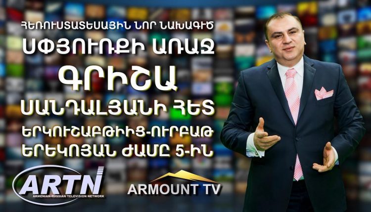 Հոկտեմբերի 22-ից յուրաքանչյուր երկուշաբթիից ուրբաթ երեկոյան ժամը 5:00-ին Լոս Անջելեսի հանրահայտ ARTN հեռուստատեսության , ինչպես նաև Լաս Վեգասի ARMOUNT TV հեռուստատեսոթյան ուղիղ եթերում կարող եք դիտել Գրիշա Սանդալյանի հեղինակային նոր հեռուստանախագիծը՝ « ՍՓՅՈՒՌՔԻ ԱՌԱՋ — ԳՐԻՇԱ ՍԱՆԴԱԼՅԱՆԻ ՀԵՏ » վերնագրով։ Տեսակետներ, կարծիքներ , մտահաղացումներ և քննարկումներ ամենա արդիական թեմաների շուրջ , ճանաչված հյուրերի և իհարկե ձեզ հետ հարգելի հեռւստադիտողներ։ Եթերը կհեռարձակվի նաև ուղիղ կապով facebook սոցիալական ցանցի հետևորդների համար։ Մասնակցեք ։ Նախապես շնորհակալ եմ։