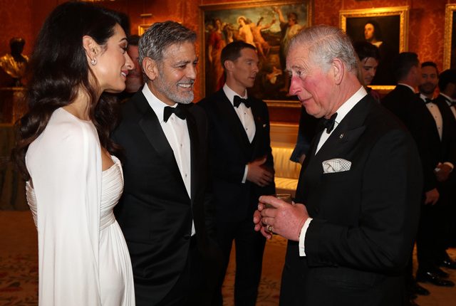 Զույգին ուրախությամբ ողջունել է արքայազն Չարլզը։ Նրանք երկար ժամանակ զրուցել են եւ ծիծաղել։ Քլունիները լավ հարաբերություններ ունեն թագավորական ընտանքի հետ։ Դերասանն ու նրա կինը ընտանիքի կարեւոր իրադարձությունների պատվավոր հյուրերի ցանկում են։ Ամուսինները մասնակցել են նաեւ Մեգան Մարքլի եւ արքայազն Հարրիի հարսանեկան արարողության..