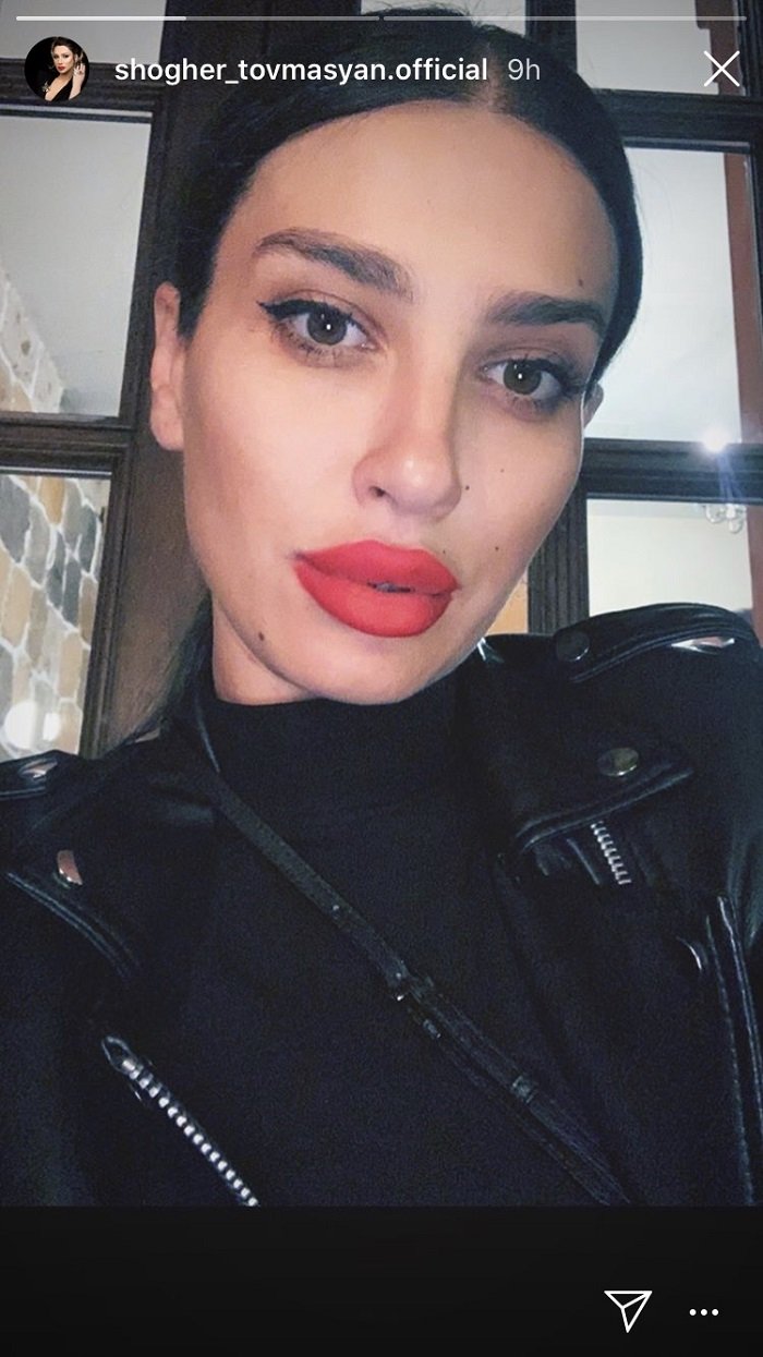 Instagram-յան էջի Stories բաժնում (այստեղ ցանկացած տեղեկատվություն հասանելի է միայն 24 ժամ, ինչից հետո անհետանում է) հրապարակված լուսանկարում դերասանուհին սեւ հագուստ է կրում՝ բլուզ եւ կաշվե բաճկոն։ Նա հավաքել է մազերը, արտահայտիչ շպար ընտրել՝ շուրթերն ընդգծելով կարմիր շրթներկով։ Շողերը լուսանկարը չի մեկնաբանել։
