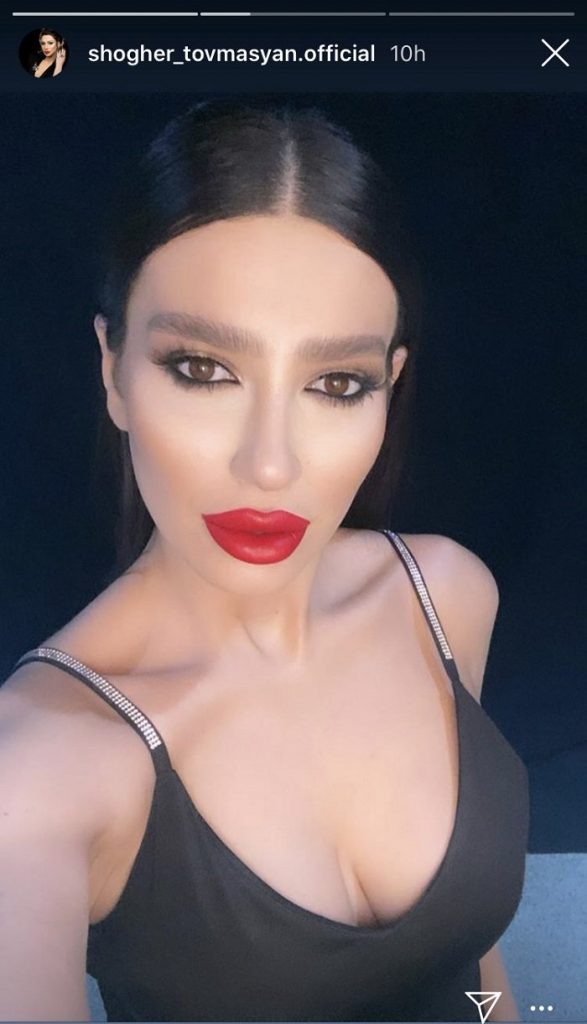 Instagram-յան էջի Stories բաժնում (այստեղ ցանկացած տեղեկատվություն հասանելի է միայն 24 ժամ, ինչից հետո անհետանում է) հրապարակված լուսանկարում երիտասարդ մայրիկը սեւ, խորը լանջաբացվածքով շապիկ է կրում։ Դերասանուհին պարզ սանրվածքով է, նախապատվություն է տվել վառ շպարին՝ ընդգծելով շուրթերն ու աչքերը։ Կարմիր շրթներկն, ի դեպ, դերասանուհու կերպարներում հաճախ է հանդիպում։