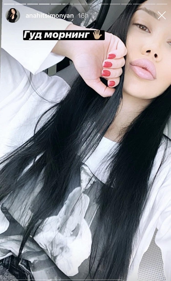 Instagram-յան էջի Stories բաժնում (այստեղ ցանկացած տեղեկատվություն հասանելի է միայն 24 ժամ, ինչից հետո անհետանում է) հրապարակված կադրերում երգիչ Հայկոյի կինը սպիտակ բլուզ է կրում եւ ջինսե տաբատ։ Նա արձակել է մազերը, արտահայտիչ շպար ընտրել՝ ընդգծելով շուրթերը։ «Բարի առավոտ»,- հրապարակումը մակագրել է Անահիտ Սիմոնյանը։