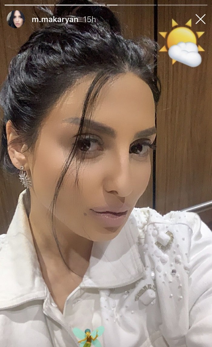 Instagram-յան էջի Stories բաժնում (այստեղ ցանկացած տեղեկատվություն հասանելի է միայն 24 ժամ, ինչից հետո անհետանում է) հրապարակված կադրերում նա սպիտակ վերնաշապիկ է կրում, որը զարդարված է քարերով։ Մերին հավաքել է մազերը, արտահայտիչ շպար ընտրել ու ականջօղեր։ Լուսանկարը մեկնաբանված չէ։