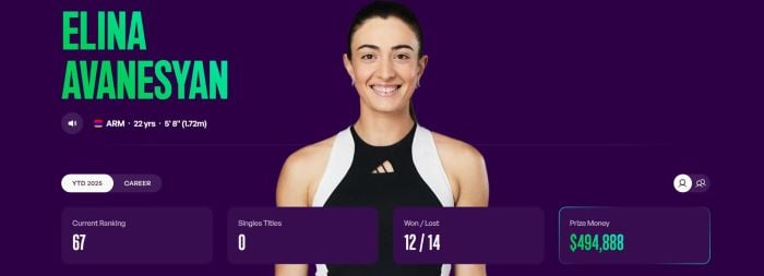 WTA. Էլինա Ավանեսյանը 67-րդն է