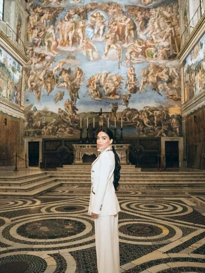 Էլեգանտ, բայց միևնույն ժամանակ համարձակ համադրությունը կատարելապես տեղավորվում էր Վատիկանի շքեղ դահլիճների մթնոլորտում։