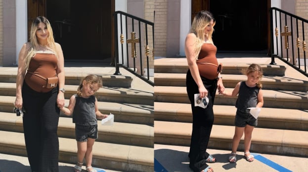 Կադրերում երգչուհին շագանակագույն շապիկով ու սև տաբատով է. հագուստի ներքո երևում է Լենայի կլորացած փորիկը: