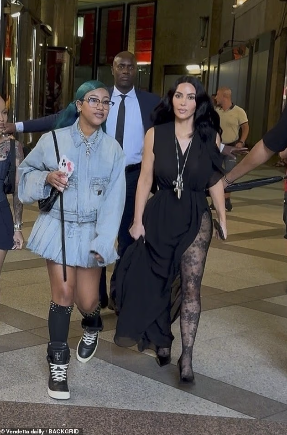 Նորաձևության մայրաքաղաքում զբոսանքի ժամանակ 44-ամյա Քիմը ներկայացել է սև զգեստով, որը բարձր ճեղքվածք ուներ։