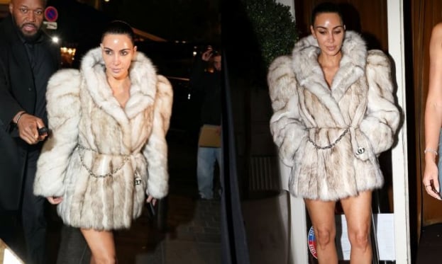 Համարձակ հանդերձանքը լրացվել էր փայլուն կրունկներով սանդալներով, արծաթե շղթայով գոտիով և աչքի ընկնող օձիքով։ Հեռախոսը ձեռքին և անվտանգության աշխատակիցներով շրջապատված՝ Քիմը Փարիզի մութ փողոցները վերածել էր իր անձնական պոդիումին՝ ցուցադրելով իր նիհար ոտքերը և փայլուն մաշկը գրեթե առանց դիմահարդարման։