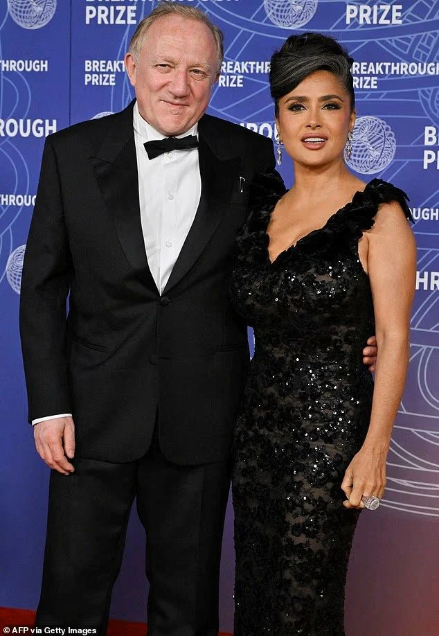 Հայեկը ուղեկցել է իր ամուսնուն՝ գործարար Ֆրանսուա-Անրի Պինոյին, որը միջոցառմանը ներկայացել է դասական սև կոստյումով և թիթեռնիկով։